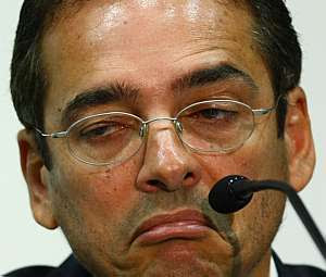 Tarso Genro, ministro da Justiça, com Luiz Fernando Corrêa, diretor geral da Polícia Federal. A cara de um, o focinho do outro.Música do dia.