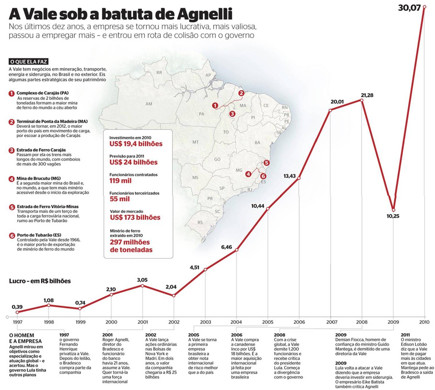 Aqulo que antes só dava prezuízo, por má gestão e desvios, além de salários milionários para os apaniguados nada fazerem, se tornou a SEGUNDA maior mineradora do mundo. Com lucros sempre crescentes a partir do primeiro ano de gestãoa privada.